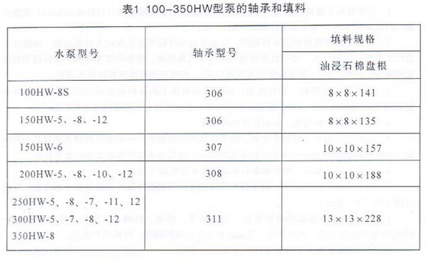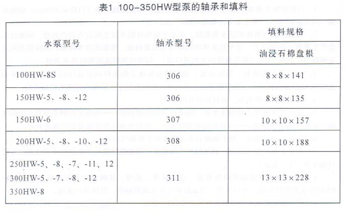 混流泵主要技术规格